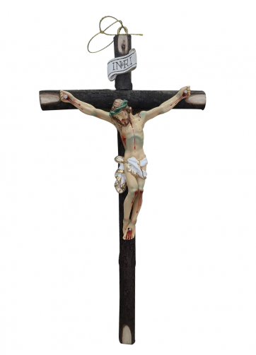 Tamaño alto: 23,5cm Cruz de resina / eucalipto