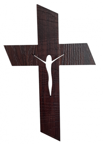 Tamaño alto: 27.5 cm Cruz de laurel, con textura de madera