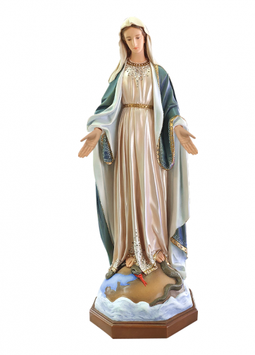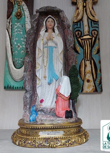 Fabricada en fibra de vidrio, esta imagen no solo destaca por su belleza, sino también por su resistencia y durabilidad excepcionales. La fibra de vidrio es un material ligero pero robusto, lo que garantiza que esta obra perdure a lo largo del tiempo, manteniendo su esplendor incluso en condiciones cambiantes.